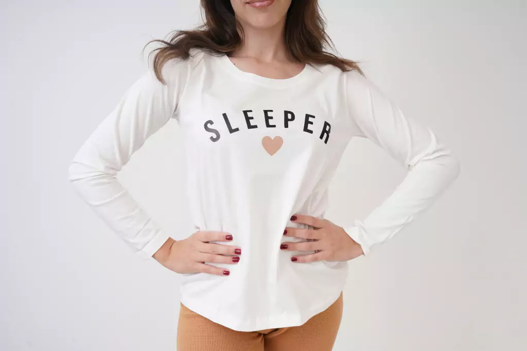 Pijama compuesto por una remera estampada de algodón y pantalón liso de morley gamuzado!. La remera es mangas largas con estampado de vinilo y tiene un calce recto. El pantalón chupin es tiro alto con cintura elastizada y puños en tobillos. El tejido es suave.
